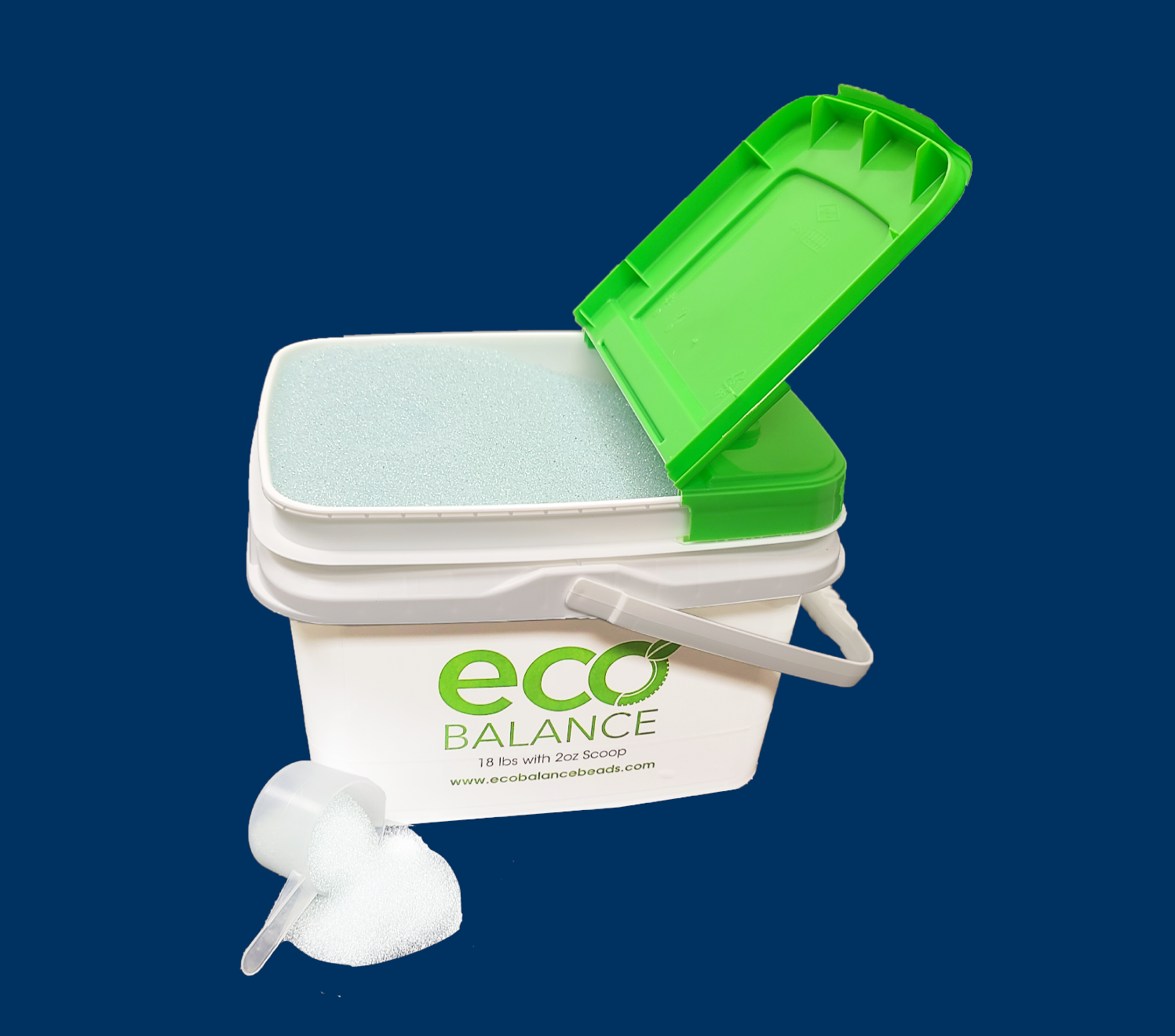 Bucket of extra large Eco drop-in beads. They are larger to help prevent clogged valve stems.